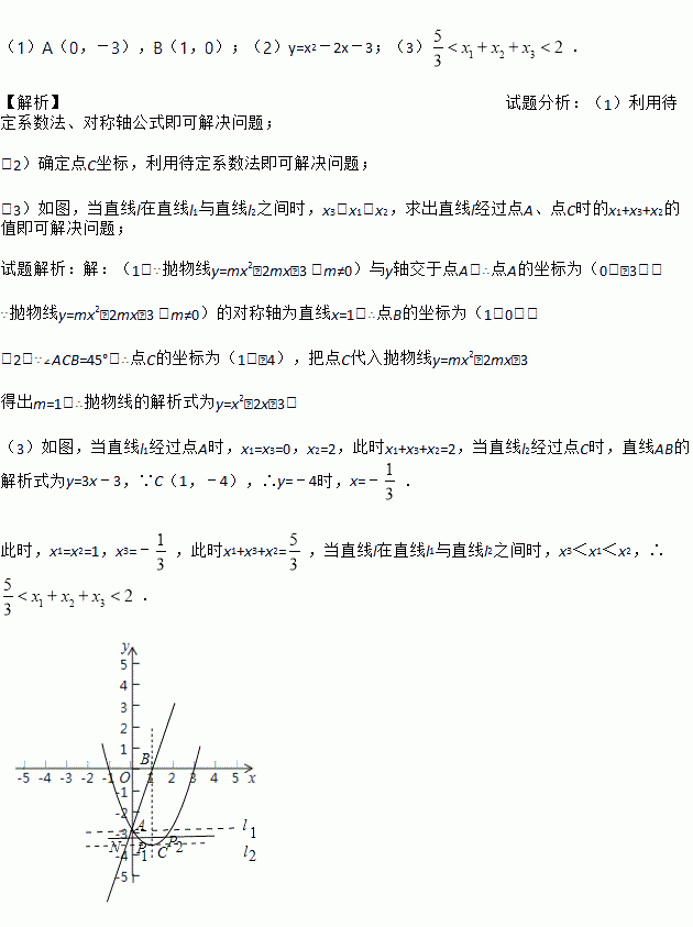 (2)若∠ACB=45°,求此抛物线的表达式;