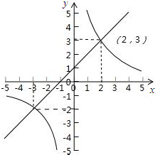 (3)利用两点法作一次函数图象,反比例函数图象是经过已知两点,在第一三象限作出双曲线;