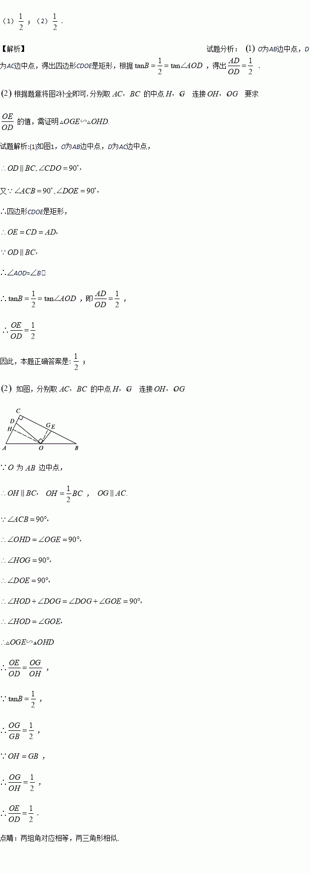 (2)如图2,若O为AB边中点,D不是AC边的中点,求