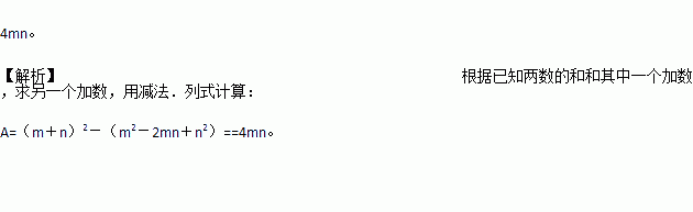 整式A与m2-2mn+n2的和是(m+n)2,则A为_______.