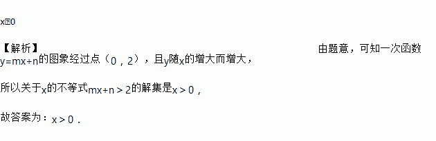 如图是一次函数y=mx+n的图象,则关于x的不等式mx+n>2的解集是________.