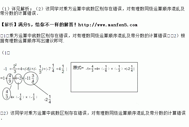 (2)请就此题反映岀的该同学有理数运算掌握的情况进行错因分析.