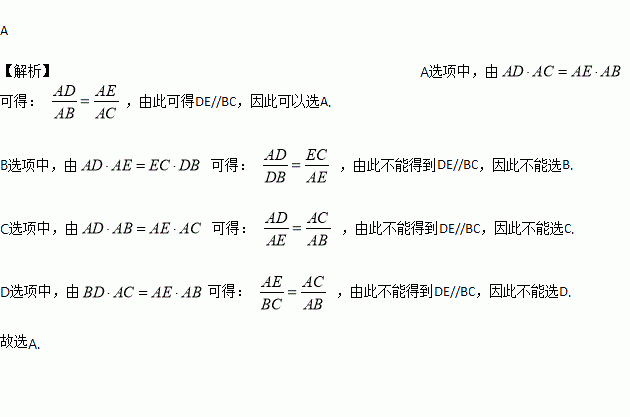 中,D在AB上,E在AC上,下列条件中,能判定DE//BC的是( )