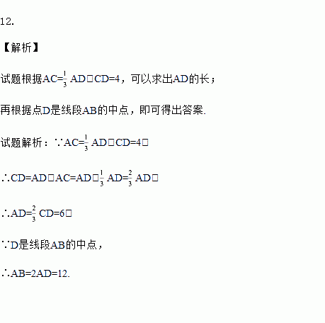 如图,点C、D在线段AB上,D是线段AB的中点,,,求线段AB的长.