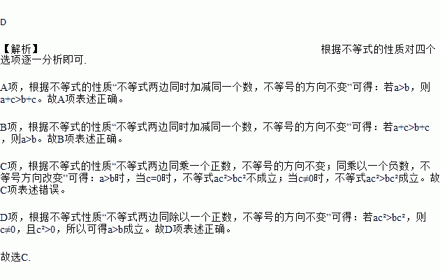A. 若a>b,则a+c>b+c B. 若a+c>b+c,则a>b
