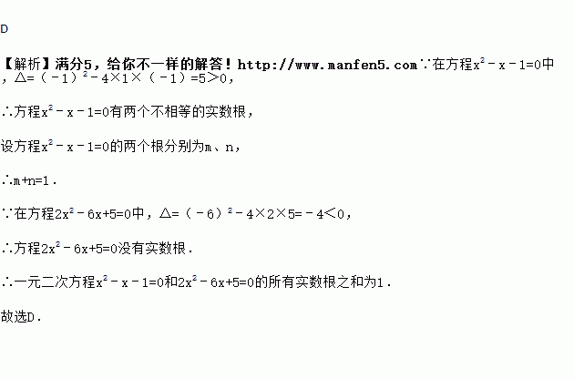 一元二次方程x2﹣x﹣1=0和2x2﹣6x+5=0,这两个方程的所有实数根之和为( )
