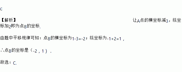 将点A(1,﹣1)向上平移2个单位后,再向左平移3个单位,得到点B,则点B的坐标为( )