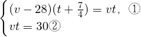 由①得v=16t+28③,