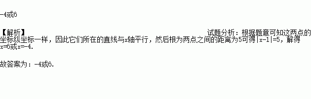 在平面直角坐标系中,若点M(1,3)与点N(x,3)之间的距离是5,则x的值是_____.