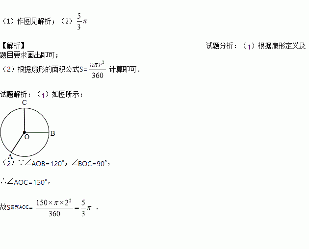 (1)在其中画两个不重叠的扇形AOB和扇形BOC,使扇形AOB的圆心角为120度,扇形BOC的圆心角为90度,
