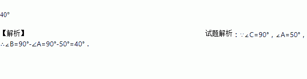 在△ABC中,若∠C=90°, ∠A=50°,则∠B=____.