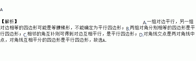 A. 一组对边平行,另一组对边相等 B. 两组对角分别相等