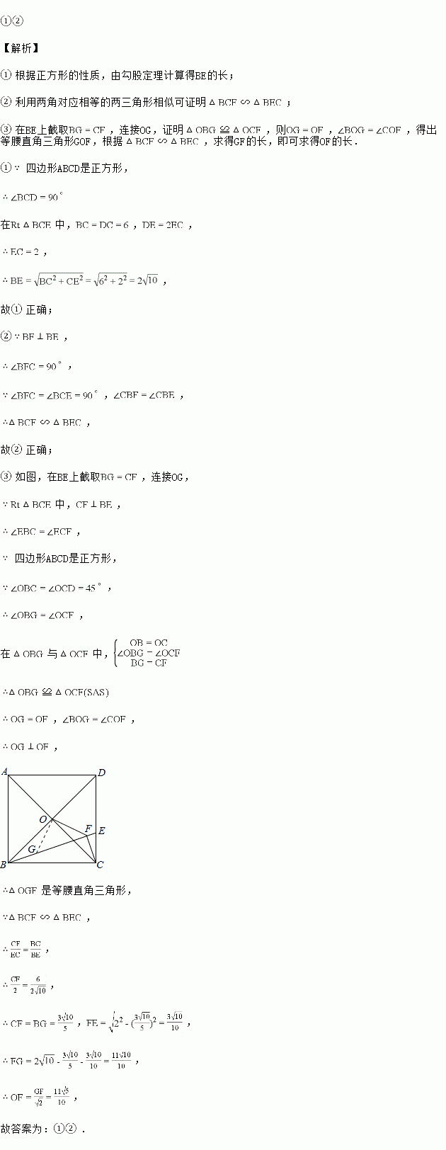 如图,正方形ABCD的边长为6,点O是对角线AC、BD的交点,点E在CD上,且,过点C作![]()
