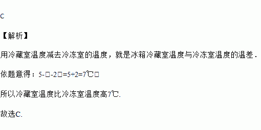 小怡家的冰箱冷藏室温度是5℃,冷冻室的温度是﹣2℃,则她家冰箱冷藏室温度比冷冻室温度高( )