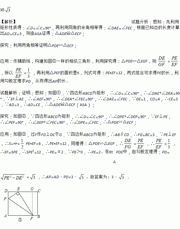 (3)应用:如图③,若EF交AB于点F,EF丄PE,其他条件不变,且△PEF的面积是6,则AP的长为_____.