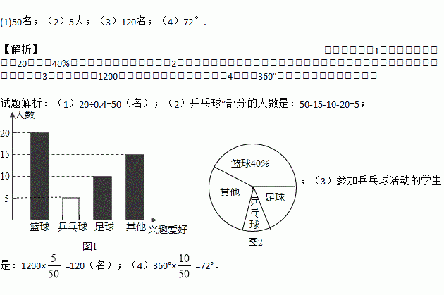 (3)若全年级共有1200名学生,估计全年级参加乒乓球活动的学生有多少名?