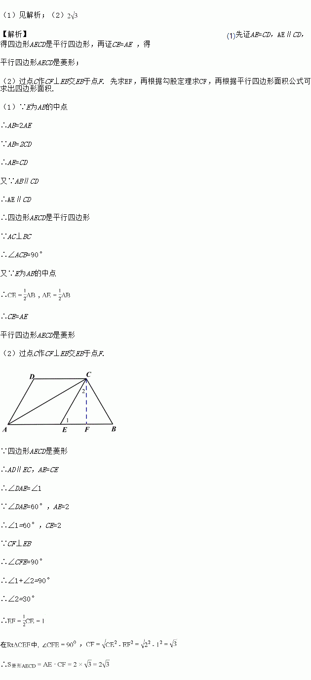 (2)若∠DAE=60°,AE=2,求菱形AECD的面积.