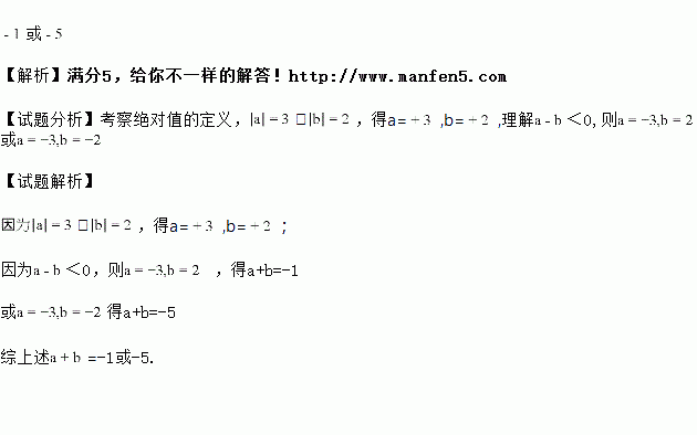 若|a|=3,|b|=2,且a﹣b<0,则a+b=_____.
