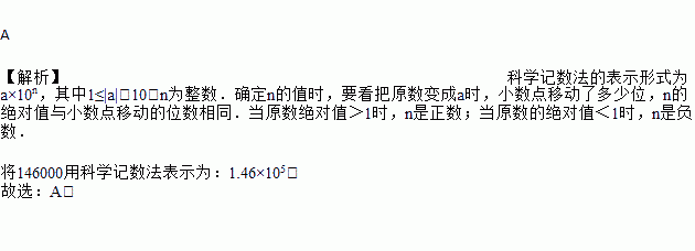 盐通铁路沿线水网密布,河渠纵横,将建设特大桥梁6座,桥梁的总长度约为146000米,将数据146000用科学记数法表示为( )