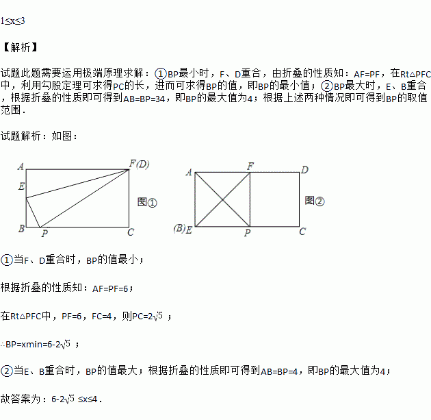 如图,矩形纸片ABCD中,AB=3,AD=5,点P是边BC上的动点,现将纸片折叠使点A与点P重合,折痕与矩形边的交点分别为E,F,要使折痕始终与边AB,AD有交点,BP的取值范围是_____.