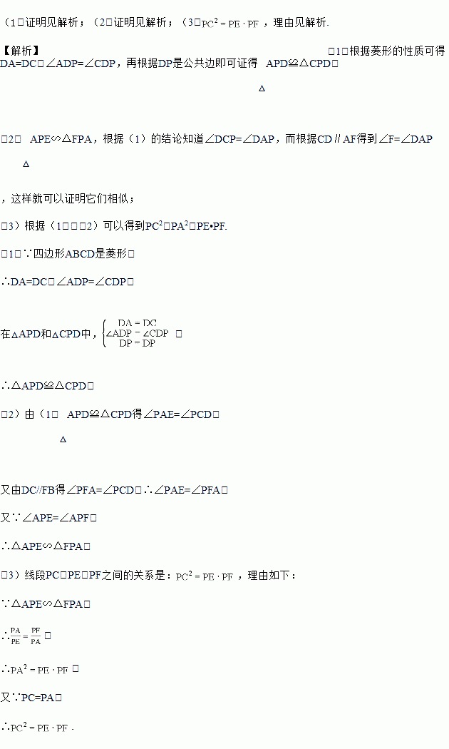 如图,点P是菱形ABCD的对角线BD上一点,连接CP并延长交AD于E,交BA的延长线于点F.
