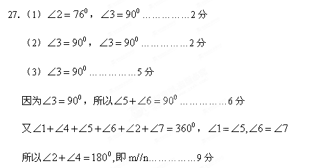 (3)由(1)、(2),请你猜想:当两平面镜a、b的夹角∠3= ___°时,可以使任何射到平面镜a上的光线m,经过平面镜a、b的两次反射后,入射光线m与反射光线n平行.你能说明理由吗?