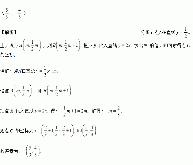 如图,在平面直角坐标系中,点A在直线y=x上,过点A作y轴的平行线交直线y=2x于点B,点A,B均落第一象限,以AB为边向右作正方形ABCD,若AB=1,则点C的坐标为______