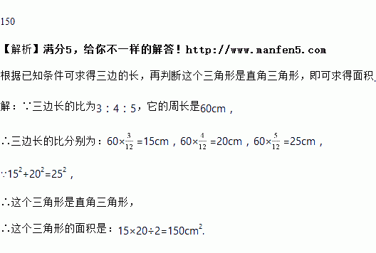 一个三角形三边长的比为3:4:5,它的周长为60,求这个三角形的面积。