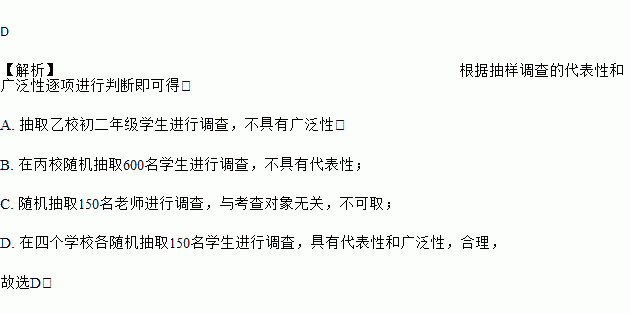在“生命安全”主题教育活动中,为了解甲、乙、丙、丁四所学校学生对生命安全知识掌握情况,小丽制定了如下方案,你认为最合理的是( )