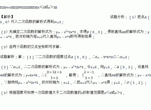 如图,已知二次函数y=﹣x2+2x+m图象过点A(3,0),与y轴交于点B