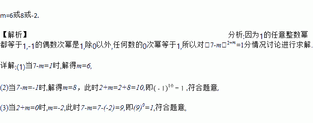 已知有理数m满足(7-m)2+m =1,求m的值.