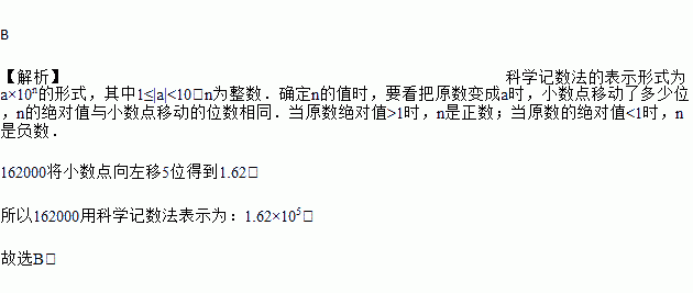 A. 0.162×105 B. 1.62×105 C. 16.2×104 D. 162×103