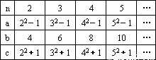 请你分别观察a,b,c与n之间的关系,并用含自然数n(n>1)的代数式表示: