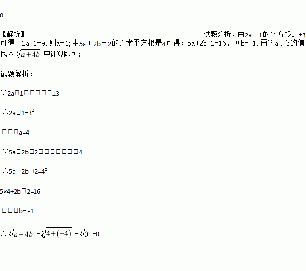 已知2a+1的平方根是±3,5a+2b-2的算术平方根是4,求的值.
