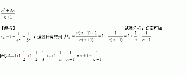 设,,,…, ,若,则S="_________" (用含n的代数式表示,其中n为正整数).