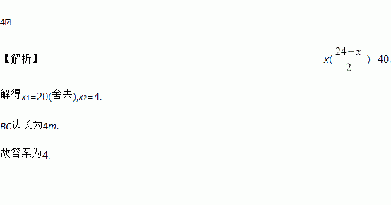 如图,用篱笆靠墙围成矩形花圃ABCD,墙可利用的最大长度为15m,一面利用旧墙,其余三面用篱笆围,篱笆长为24m,若围成的花圃面积为40m2时,平行于墙的BC边长为_____m.