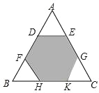 如图,正三角形的边长为12cm,剪去三个角后成为一个正六边形,则这个正六边形的内部任意一点到各边的距离和为 cm.