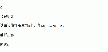 在同一时刻,身高1.6m的小强的影长是1.2m,旗杆的影长是15m,则旗杆高为( )