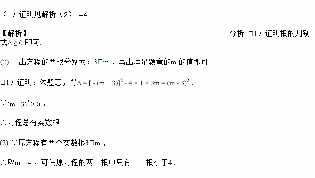 (1)求证:方程总有实数根;