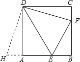分析:把△DCF绕点D顺时针旋转90°得到△DAH,然后证明出HE=EF,根据边边边定理得到△DEH与△DEF全等,再根据全等三角形对应角相等得到∠EDH=∠EDF,然后根据∠FDH=90°即可得解.