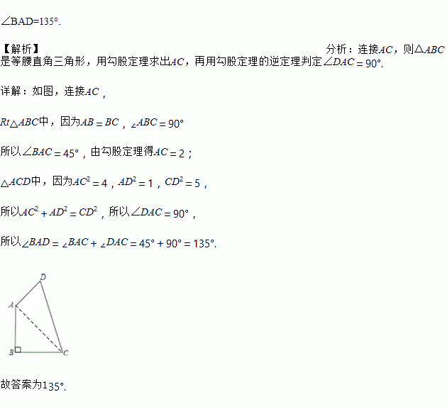 四边形ABCD中,AB=CB=,CD=,DA=1,且AB⊥CB于B.求∠BAD的度数;