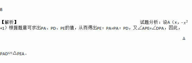 B 【解析】试题分析:设A(x,-+1)根据题意可求出PA、PD、PE的值,从而得出PE:PA=PA:PD,又∠APE=∠DPA,因此,△PAD∽△PEA.