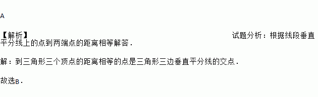 到三角形三个顶点的距离相等的点是三角形( )的交点.