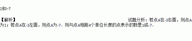 在数轴上点A表示-3,则与点A相距4个单位长度的点表示的数是_____。