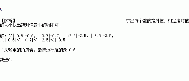 如图,检测4个足球,其中超过标准质量的克数记为正数,不足标准质量的克数记为负数,从轻重的角度看,最接近标准的是( )