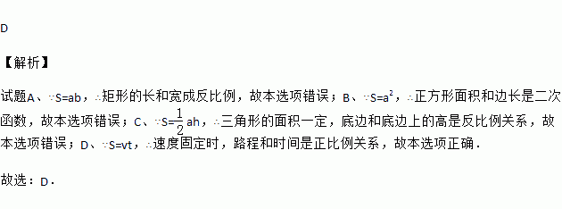 A. 矩形面积固定,长和宽的关系
