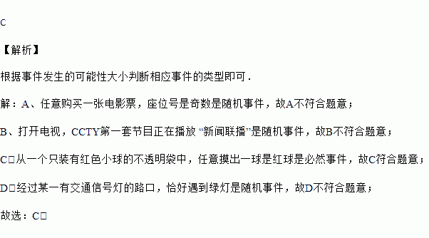 C. 从一个只装有红色小球的不透明袋中,任意摸出一球是红球