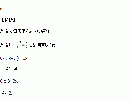 A. 1﹣x﹣3=3x B. 6﹣x﹣3=3x C. 6﹣x+3=3x D. 1﹣x+3=3x