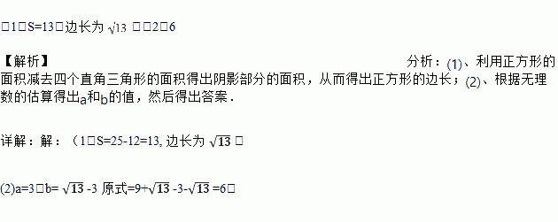 (1)请求出图中阴影部分(正方形)的面积和边长
