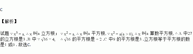 C. 9的算术平方根是3 D. 立方根等于平方根的数是1